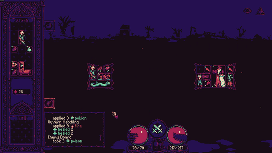 A dark fantasy inventory-management autobattler. Collect cards, traverse a hostile world, and wield alchemy to mutate cards, combine effects, and shape your build.