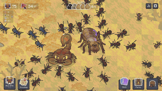You play as the queen of ants, managing an anthill. Ants cannot be controlled directly, but you can create the necessary types of ants; improve them; organize raids, build a dungeon! The goal of each level is to destroy all enemy bases.