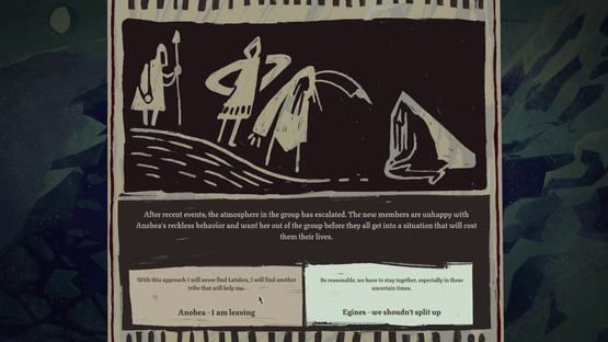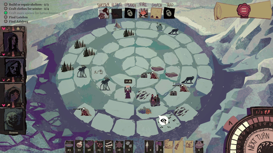A turn-based survival strategy game where players must lead their group of characters through an arctic landscape while exploring and dodging or confronting threats. The map consists of a series of rotating concentric circles, so it is never static between turns.