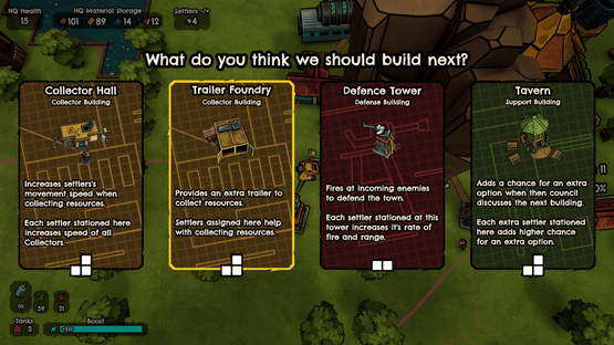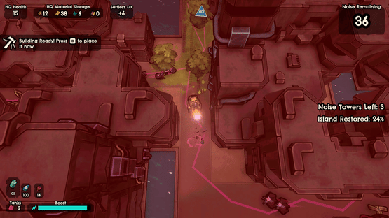 A mini action city-builder in a post-post-apocalyptic world. Grow your settlement. Fend off waves of enemies. Restore nature.