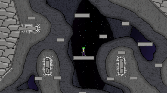 Curtains The Clown is a compact 2D adventure with multiple possible outcomes. Use simple platforming mechanics like wall jumps and double jumping to guide Curtains through a treacherous world in search of a way to continue (or end) his journey. Hidden away in seemingly unreachable places are 6 items that hold the keys to various exits. Find and bring an item to its corresponding NPC/world object to discover what fate will become of our clown friend.