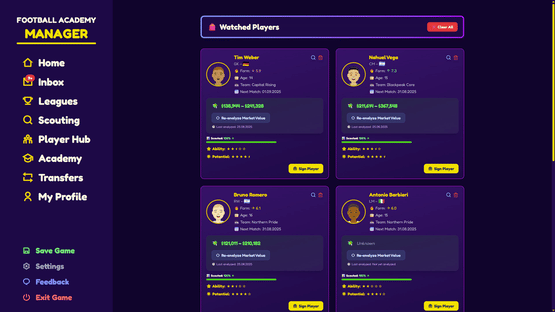 Scout young players, discover their strengths, and bring them into your academy. Help them grow through training, negotiate transfers when the time is right, and use each success to build your reputation in the football world.