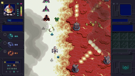 The Cyan galaxy is in peril! Your trusty little star fighter and rag tag squad of wingmen are the only hope against the evil EXODON! Level up from a pea shooter to an offensive powerhouse as you engage in frantic combat across many wondrous locales.