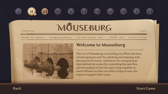 Mouseburg is a turn-based resource management game where you compete to become the most influential tycoon. Buy real estate, acquire company stock, invest in city projects, and gain influence to become the most powerful mouse in the city!