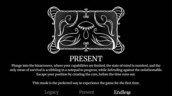 You open your eyes in a surreal space, paralysed. The only thing you can do is to scarcely move your right arm, and scribble. Scribble in a notepad before you to move forward. Towards a goal you must reach, despite something horrific trying to reach you. Create the cure. You don't have much time.
