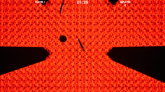 Top-down 3D air-hockey-style game requiring only your mouse. Using swords instead of mallets, score goals by hitting the puck into your opponent's goal, or prevent goals by hitting your opponent away from the puck. The player with the most goals after 3 minutes wins!