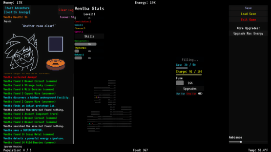 Keep an ancient megabuilding alive and thriving with the help of Ventba! This game is a semi idle management game with roguelike mini dungeons.